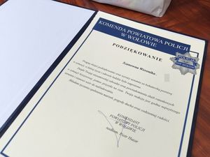 W budynku wołowskiej Policji odbyło się wyjątkowe spotkanie, podczas którego Komendant Powiatowy Policji w Wołowie nadkom. Piotr Huzar podziękował „małej bohaterce”, czyli 9-letniej Weronice, która uratowała zdrowie, a może nawet i życie swojej mamie.
