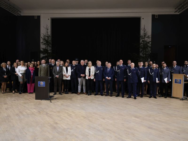 Ponadto wyróżniono funkcjonariuszy, którzy wykazali się szczególnymi zasługami w służbie, wręczając im podziękowania i gratulacje za wzorową postawę, odpowiedzialność oraz działania na rzecz bezpieczeństwa mieszkańców powiatu wołowskiego. Podkreślono, że ich praca i zaangażowanie stanowią istotny wkład w budowanie poczucia bezpieczeństwa lokalnej społeczności.